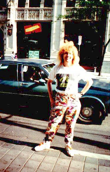 Tom and Larry were such a hit that they were tranferred to afternoon drive on the station. This was excellent news for Beau, as this was during an era where Beau was working from 7:00 a.m. to 3:30 p.m. at the wholesale. This meant that when Tom and Larry did the call-in shows, Beau would not be at work any more. He would be on the way home from work, or at home. This led to some weird ingenuity on Beau's part; he couldn't get home in time for certain call-ins, so he would call in from pay phones on his way home. Beau was constantly searching for good, isolated pay phones on his way home, where there would be no one around to hear him scream that familiar greeting into the receiver of, "WELL, HEY MAN, LIKE, IT'S DAVID LEE ROTH, MAN, HOW'S IT GOING?" In addition, Beau of course needed to tape every time he got on the air, so he carried a ghetto blaster around with him in his car. He would keep it on with him as he dialed (to make sure the call-in segment wasn't over yet) and started taping with the sound down once the phone rang. Beau started attending Pychedelic Mondays much more frequently, doing the David Lee Roth schtick there live. That was great fun. Tom started doing more schtick on Thursdays at The Diamond Club, another rock club, after the KIS FM Thursday night band radio simulcast, and the regulars, including Beau as David Lee Roth, joined him there, too. Other DJs on KIS FM started their own call-in shows, and some of Tom and Larry's regulars called in to those, too, including "Diamond Dave." Most notable among these were Jack Hammer's and Tiger "Tigger" Williams (that's a hot babe, folks)' overnight shows on Friday and Saturday nights and Brother Jake's morning show Monday to Friday with his "Early Morning Prize Question." (That's interesting, to call in doing "David Lee Roth" at 6:10 in the morning in your underwear after you've only been out of bed for two minutes. Your prep for that consists of thinking of a funny answer lying in bed as you're waking up.)